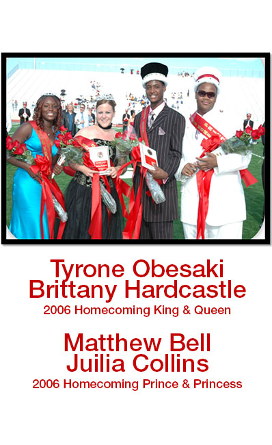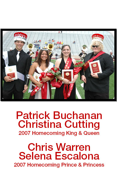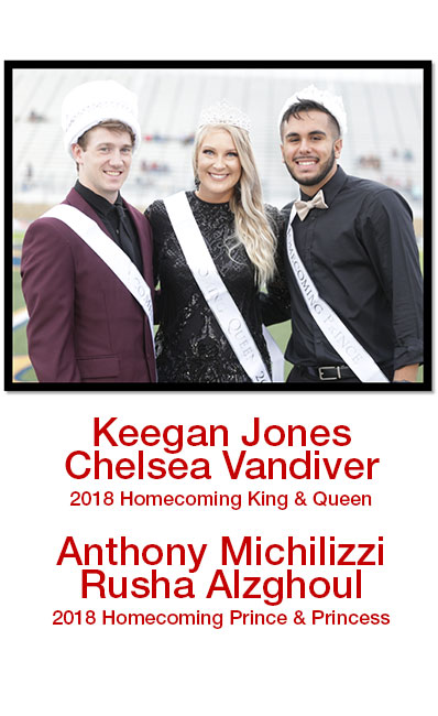 A long-celebrated tradition at 皇冠博彩 that highlights the past, present, and future of 皇冠博彩 generations through the selection of 同学会皇室. In the earliest years 皇冠博彩 only had 回家coming Queen and 足球宝贝. 自1973年以来,“足球甜心”不再加冕。 In 1995, the crowning of an official "王" became standard as did the crowning of 王子和公主 in 2006.